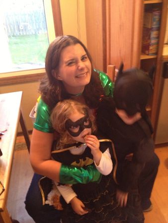You’re seriously rocking that Robin suit!! Seriously, it’s adorable that your children batman’s sidekick is Robin their Mama. 🙂
